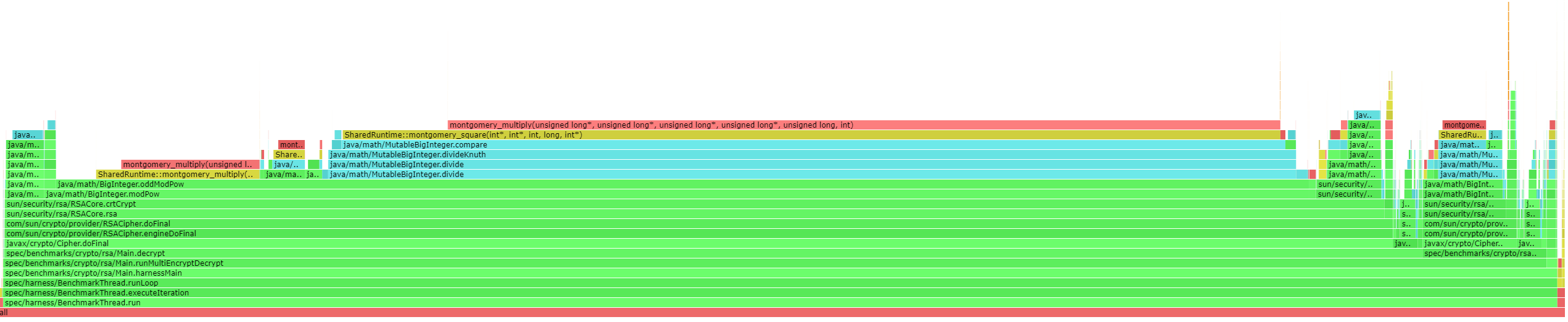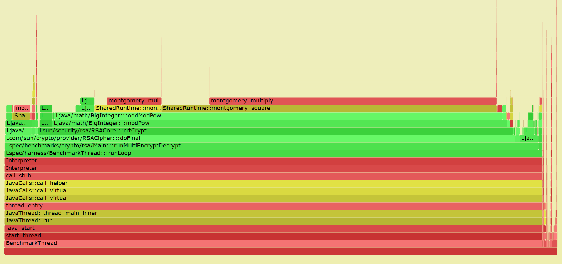 在上一周,我们尝试生成了一些火焰图,这里以 crypto.rsa 为例,开始探索分析 Java 火焰图的生成方案。