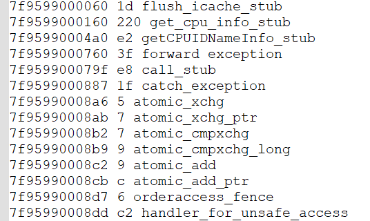 其中,DynamicCodeGenerated 的回调函数提供的参数已经包含了我们需要的 code_addr code_size entry,因此直接写入即可。对于 CompiledMethodLoad 中调用默认配置下使用的 generate_single_entry,可以直接获取地址和大小,需要做的是获取方法名等相关信息。