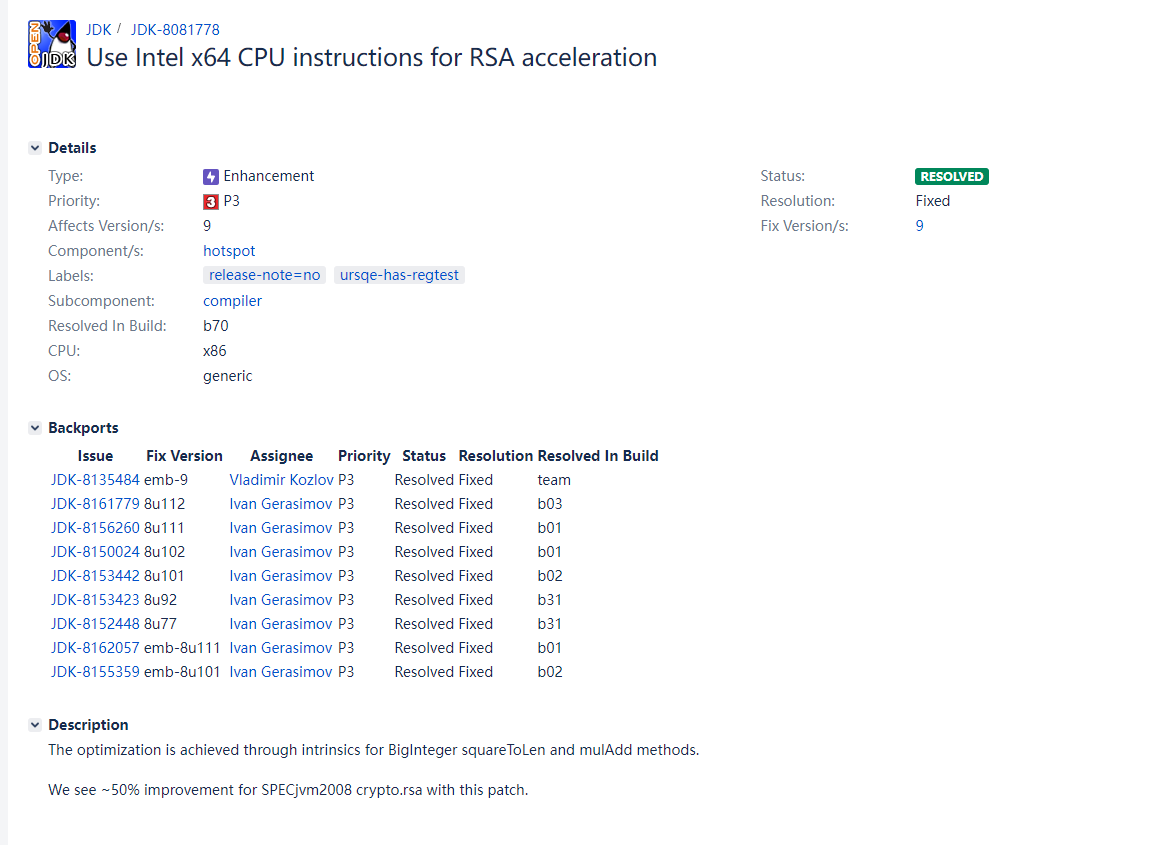 根据火焰图上出现的 montgomery_multiply,我们可以在 https://bugs.openjdk.org/browse/JDK-8153189 和 https://bugs.openjdk.org/browse/JDK-8081778 找到相关的改进。