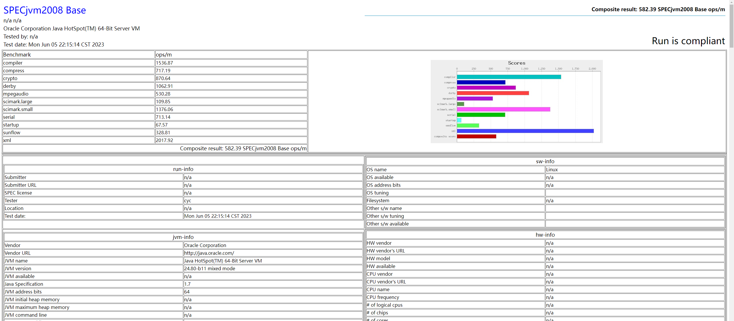 图 2 Ubuntu20.04 Oracle JDK1.7u80 582.39ops/m
